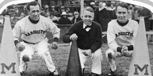 They were always on the job with pep and noise when it was needed and did more than their share toward the subjugation of the unruly Freshmen. Marquette cheering was unorganized years ago, but in the last few seasons it has increased wonderfully and it is chiefly due to the spirit and work of our cheerleaders. Various new yells were tried with great success.