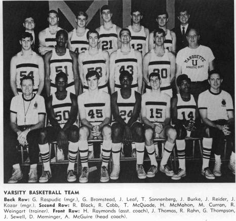 The Boilermaker tilt left Marquette only a few seconds, or, a single shot, away from its first trip to the national finals. The Warriors overcame an early 14-3 deficit to eventually send the game into overtime, then watched Rick Mount end it all with a jumper at the gun. Marquette finished the season ranked 14th in both the UPI and AP polls and ranked 12th nationally in scoring defense, allowing 63.5 points per game.