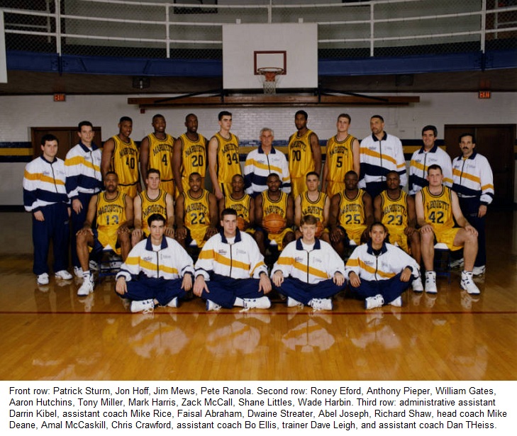 Offensively, Deane's first year at the helm was a “three for all,” as Marquette set a school record for three point attempts with 703 shots. Junior Roney Eford led the team in scoring with 436 points and a 13.2 average. Sophomore Anthony Pieper finished a close second with 431 points and a 13.1 average per game. Tony Miller and Amal McCaskill finished with 356 (10.8) and 354 (10.7) points respectively.