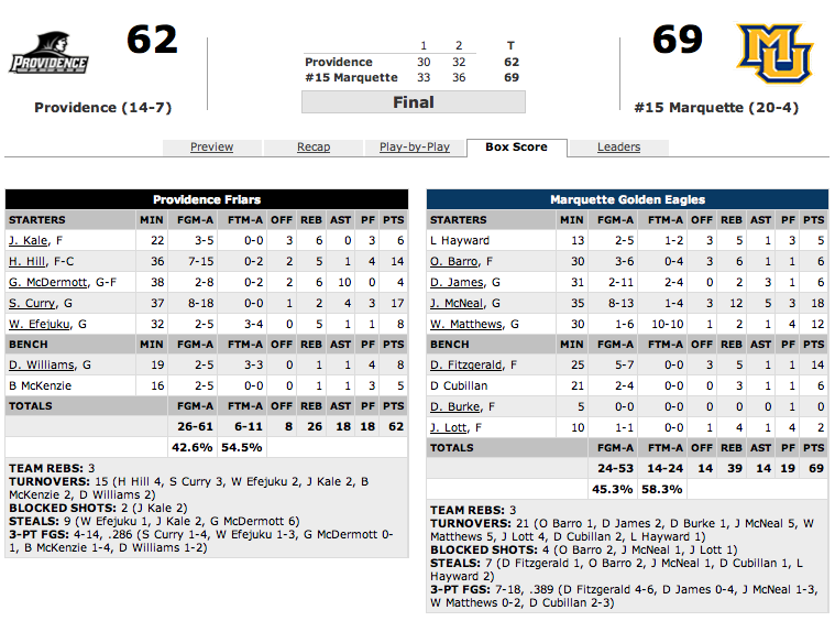HOME TEAM: 14/15 Marquette TIME SCORE MAR VISITORS: Providence