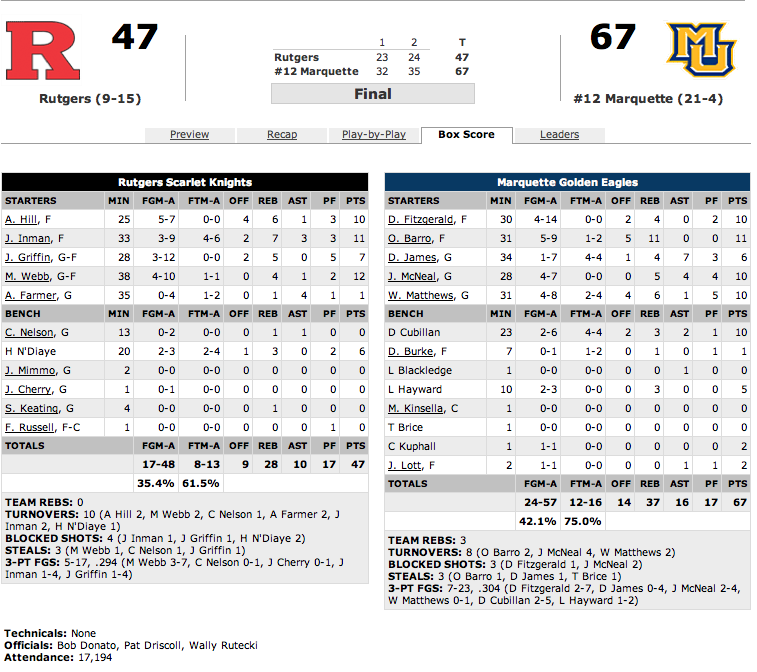 Technical fouls: Rutgers-None. 11/12 Marquette-None.