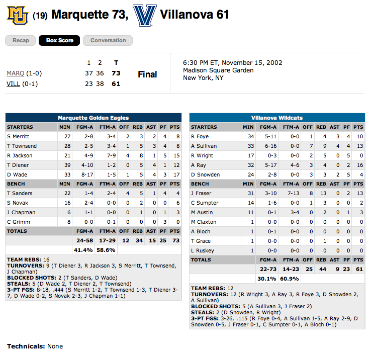 November 15, 2002 - Marquette vs. Villanova