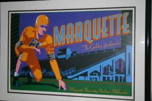 From 1924 to 1937, Marquette Men's Football team was dubbed the “Golden Avalanche” by the sports media for the sight of the football players in golden helmets charging down the field.